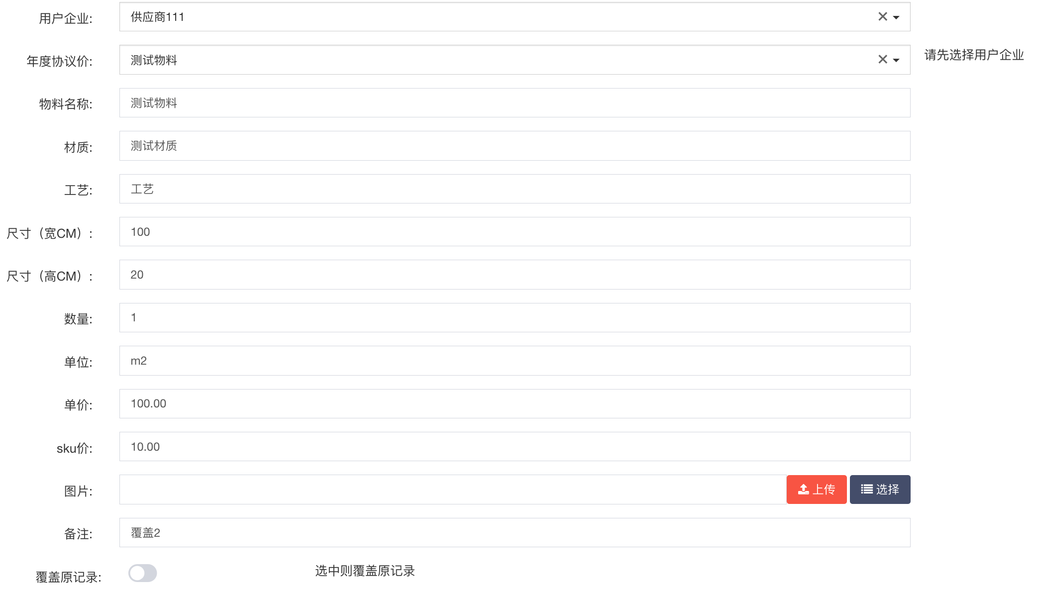 - 覆盖原记录:选中后会将当前内容覆盖到年度协议价记录上