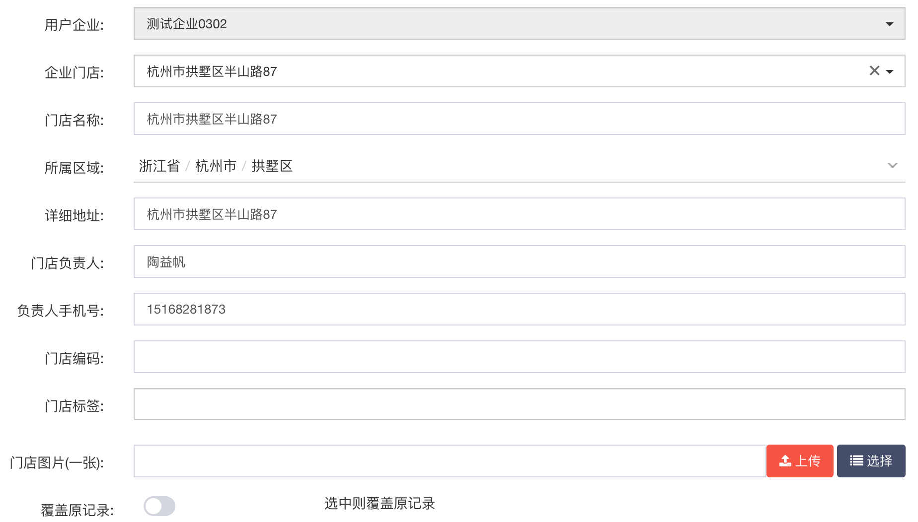 - 覆盖原记录:选中后会将当前内容覆盖到企业门店记录上
