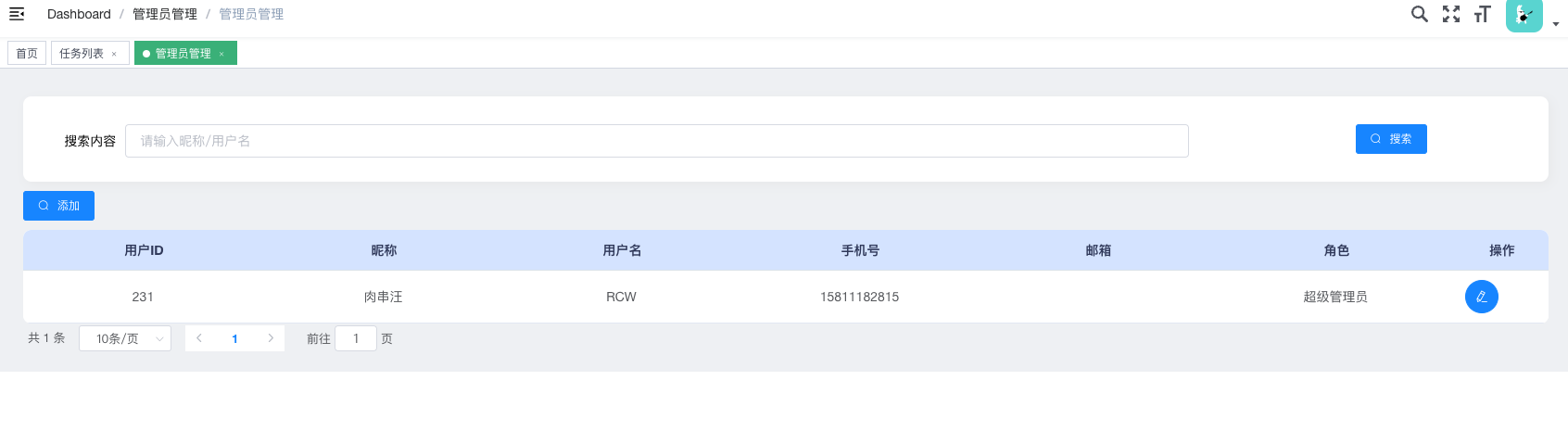 管理员基本信息管理(添加/编辑/删除),给不同管理员赋予不同角色权限